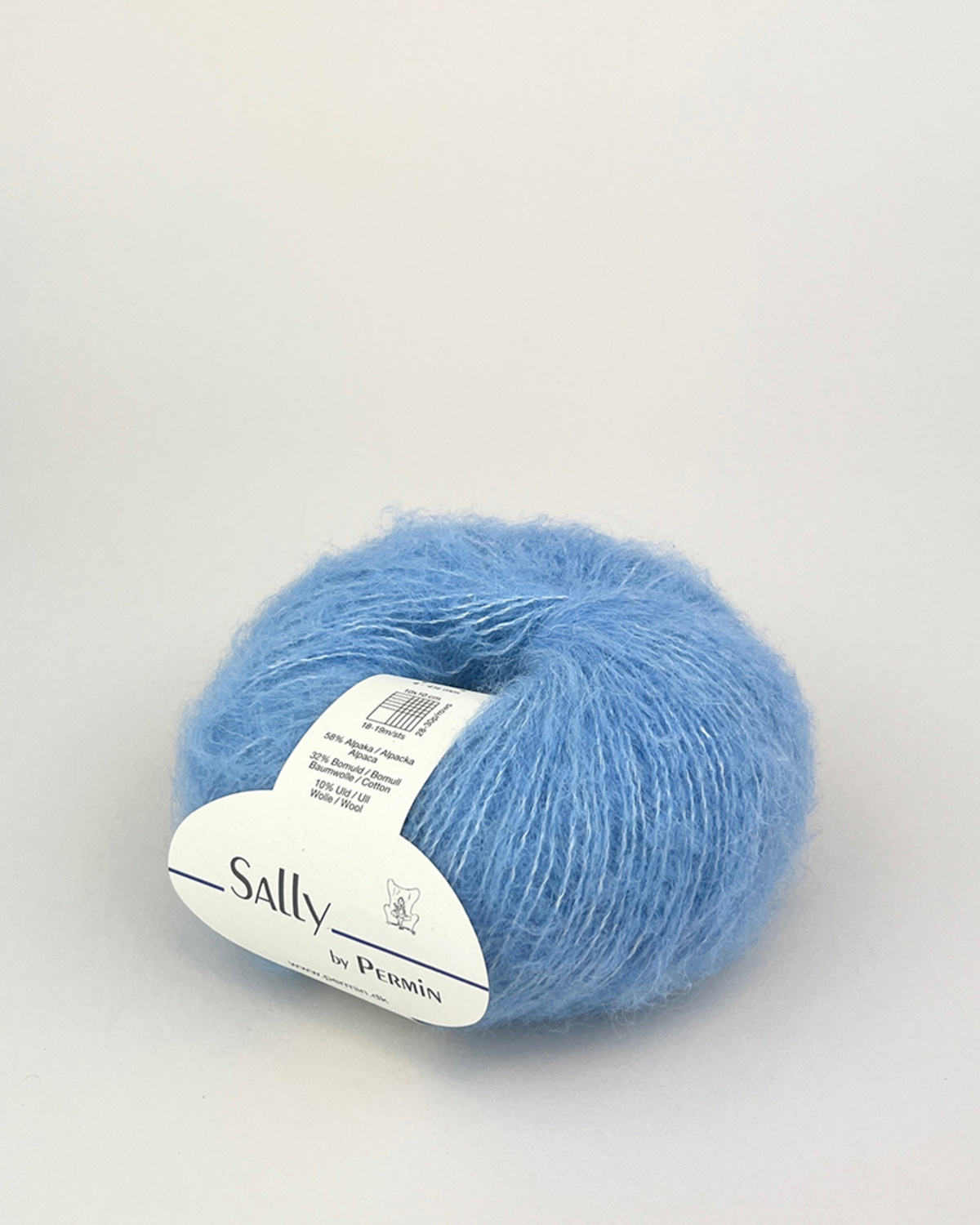 Sally består nemlig ligesom Nanna af superfine alpaka, bomuld og merinould, men der er skruet op for alpakaen og lidt ned for bomulden i Sally, som består af 58% superfine Alpaka, 32% bomuld og 10% merinould. Og hvor Nanna kun fås i alpakaernes egne naturlige farver, så fås Sally i en perlerække af fine farver.