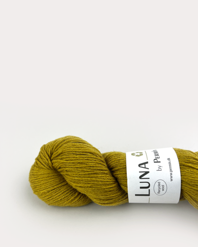 Luna by Permin er et helt specielt, og så alligevel velkendt garn. Luna er nemlig 100% recycled uld, lavet af kasserede fibre fra produktionen, der er blevet sorteret efter farve, hvorefter fibrene bliver kartet, spundet og vundet op til nye nøgler. Derved bruges der mindre energi, kemi og vand under forarbejdningen, da garnet ikke skal genfarves eller skylles.